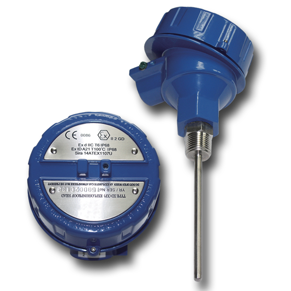The RTD is a variable resistor that will change its electrical resistance depending on temperature. The platinum is commonly used as an RTD sensing element due to its purity, linearity and stability over a wide range of temperatures. A thermocouple is made by two dissimilar metals that generate electrical voltage in direct proportion to changes in temperature. HAWK AX model is with a aluminum explosion proof head assembly and a element installed in a metallic drawn and top-welded stem tube.