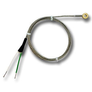 The HAWK A model sheet type temperature sensor is welded into a pad, allowing tight contact with surface. This type surface temperature sensor is a flat, flexible sensor designed to measure temperature on the surface of objects. It is commonly used where traditional probe-type sensors cannot fit, especially in applications requiring close contact with irregular or flat surfaces.