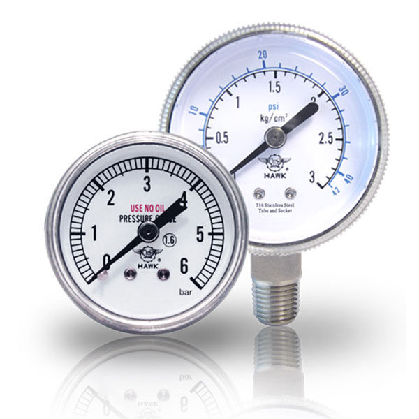 HAWK 26L和26B系列全不鏽鋼壓力錶是為了滿足各工業運用端對高品質產品的需求。 316SS 的結構讓此壓力錶在需要耐腐蝕、耐惡劣環境時也能可靠的運行。 1 1/2″, 2″ 和 2 1/2″ 的小尺寸錶徑設計讓此系列很適合用於有空間限制的作業環境