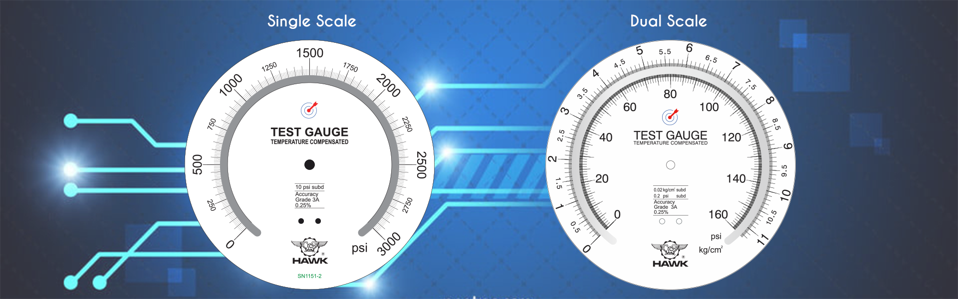 The appropriate operating range falls in the middle half of the gauge (25% to 75% of full scale). If you choose the unsuitable range, the fatigue of bourdon tube may be resulted. HAWK Supplies a wide selection of range from vacuum to 20000 PSI including compound range.